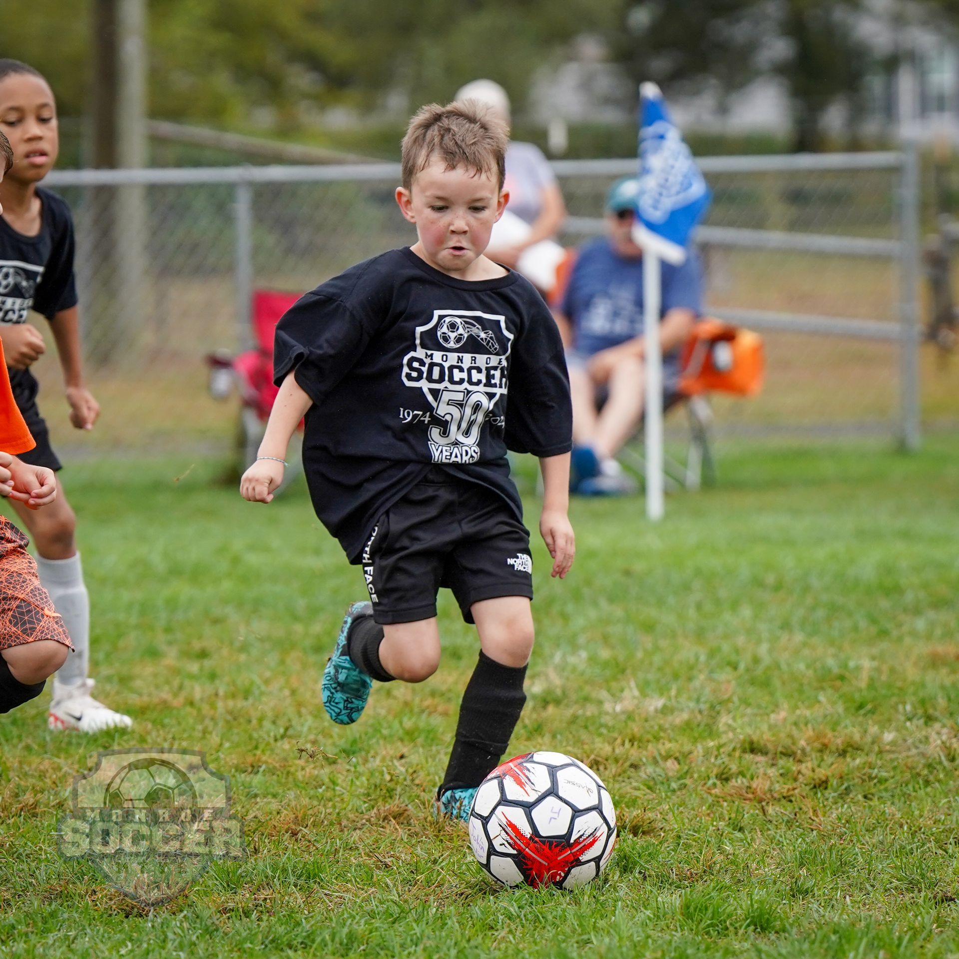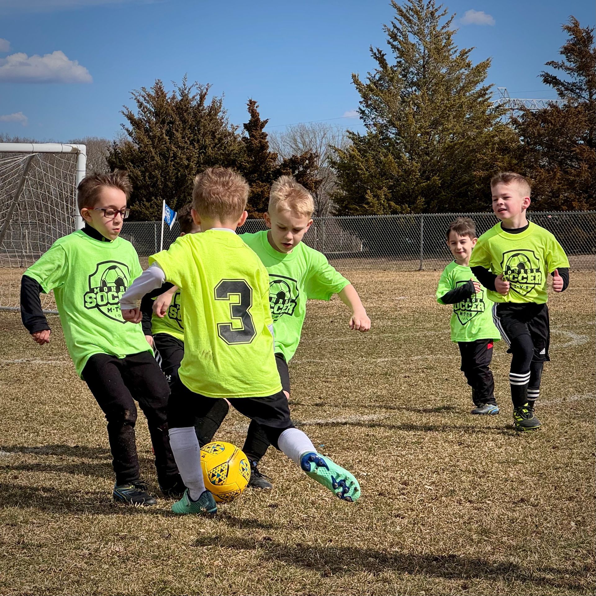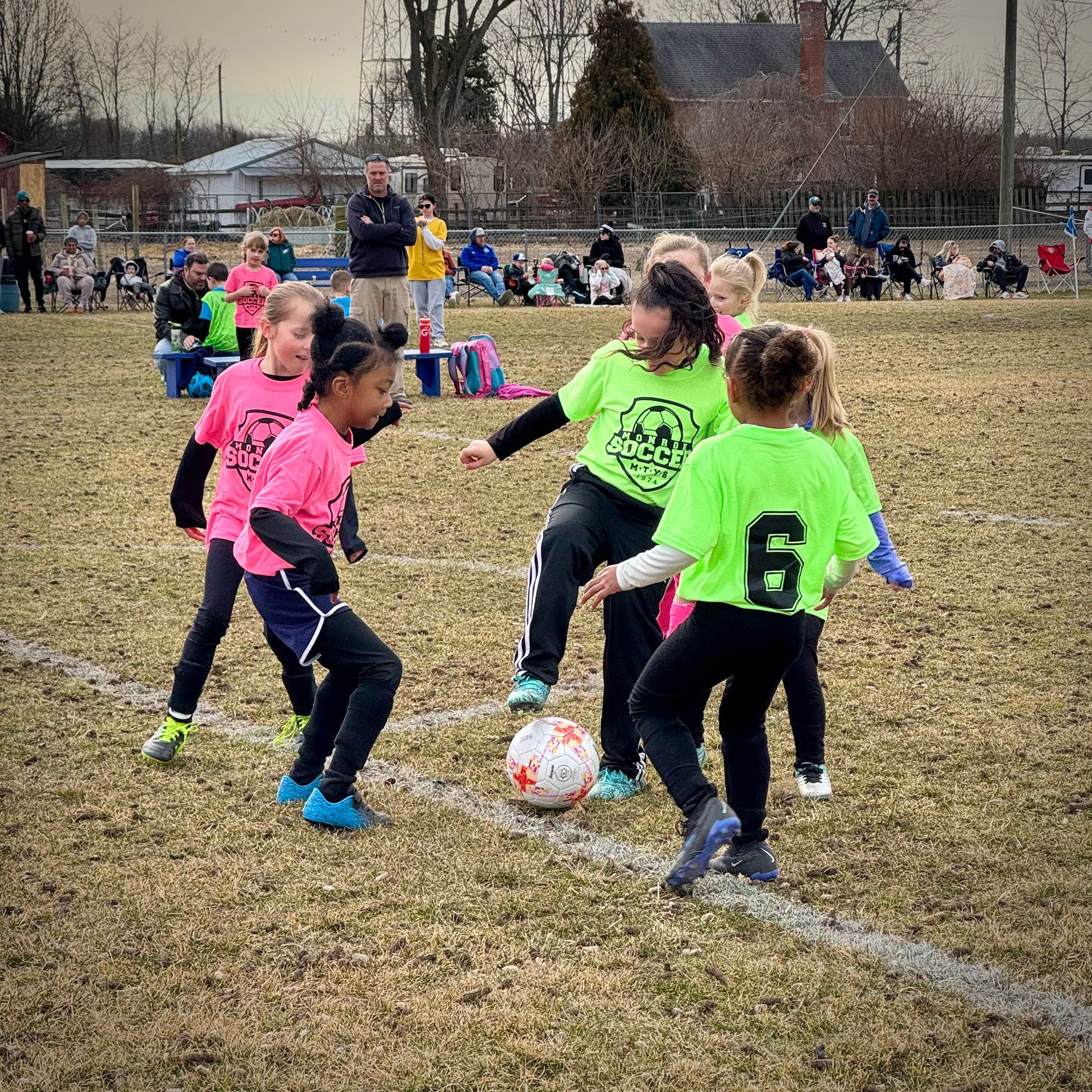Players will be playing 6v6 on a 30x40 field with a goalie and with some basic rules. Basic soccer rules such as throw-ins, goal kicks and corner kicks are part of this game. We also assign a youth referee to officiate the game and help enforce the rules while still teaching the players. For a complete set of rules for Micro’s please click here, MICRO RULES. The main focus at this age group is individual skill combined with team work on a basic level. Creative play comes from individual skill, this is very important at this age. Things like not taking the ball from your team mate and working together to defend would be examples of team work. While positions are an important part of the game of soccer, it is not the primary focus at this age group. Players will be introduced but not held to a specific spot. All players at this age should be rotated through the various spots on the field to encourage learning and fun.
